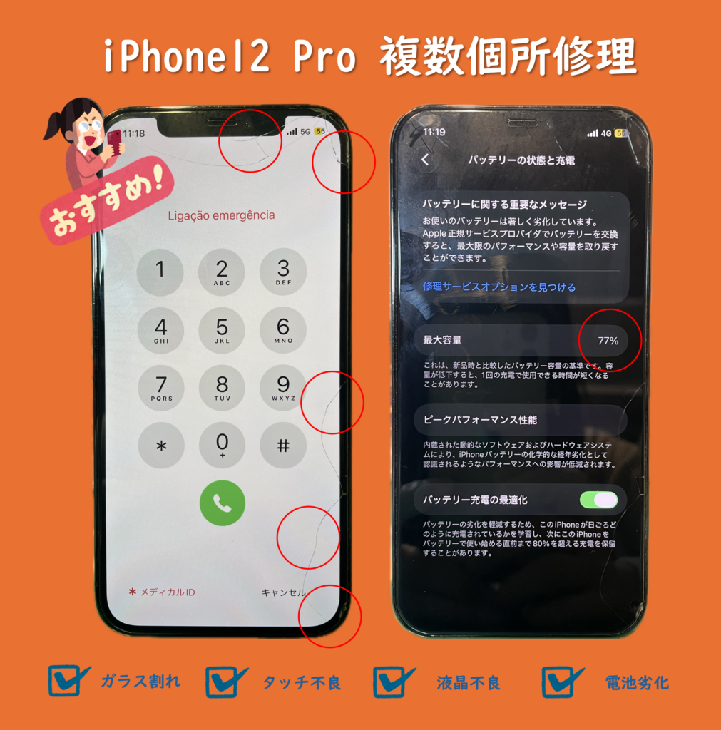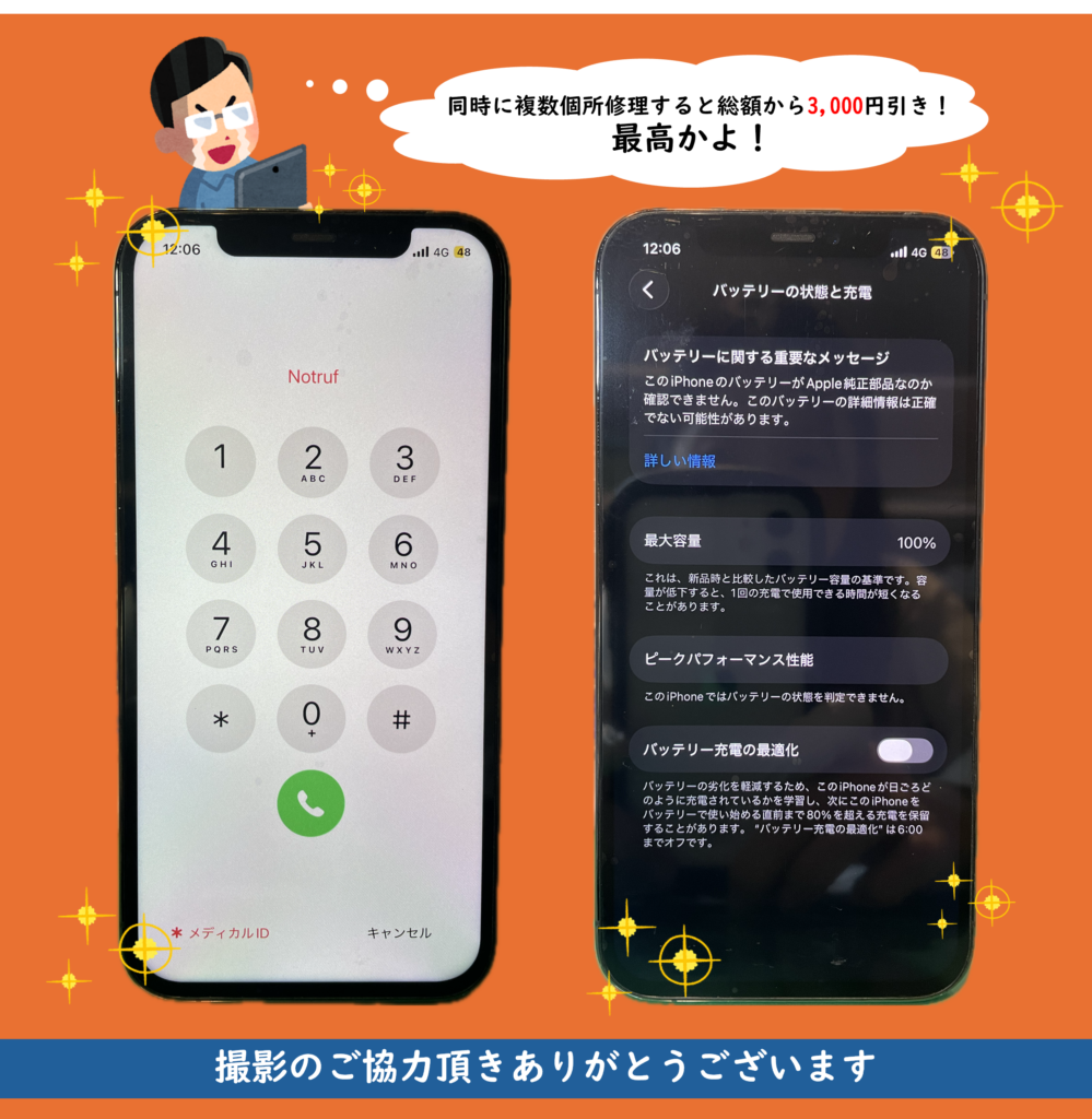 【iPhone12Pro】【画面修理】【電池交換】複数個所同時修理でとってもお得!