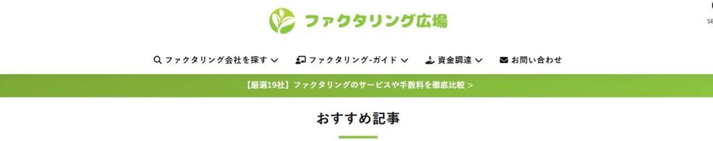 「ファクタリング広場」は、ファクタリングによる売掛金の現金化に関する情報を中心に、基本的な仕組みから導入手順、審査の流れ、費用計算までを整理した総合サイトです。手数料や契約形態(2社間/3社間)、買取可能金額をもとにファクタリング会社を比較できるほか、業界別の利用事例や市場動向も掲載。さらに、会計・税金・法律面のポイントや、銀行融資・公庫融資・不動産担保ローンなど他の資金調達手段についても解説しており、経営判断に必要な情報をまとめています。