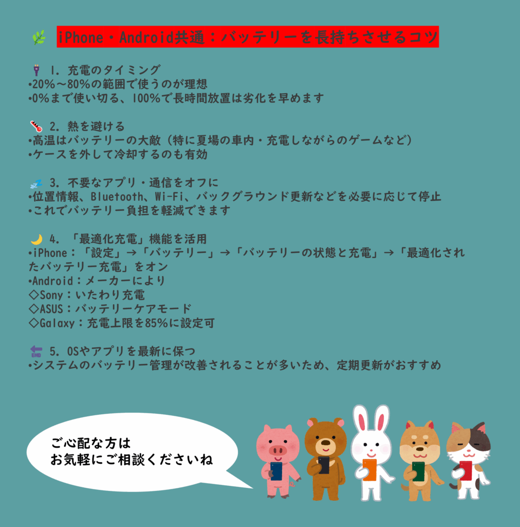 💡 バッテリーを長持ちさせるコツ